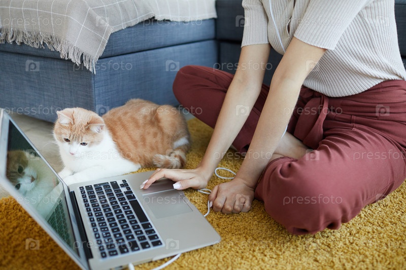 Женщина с ноутбуком на полу