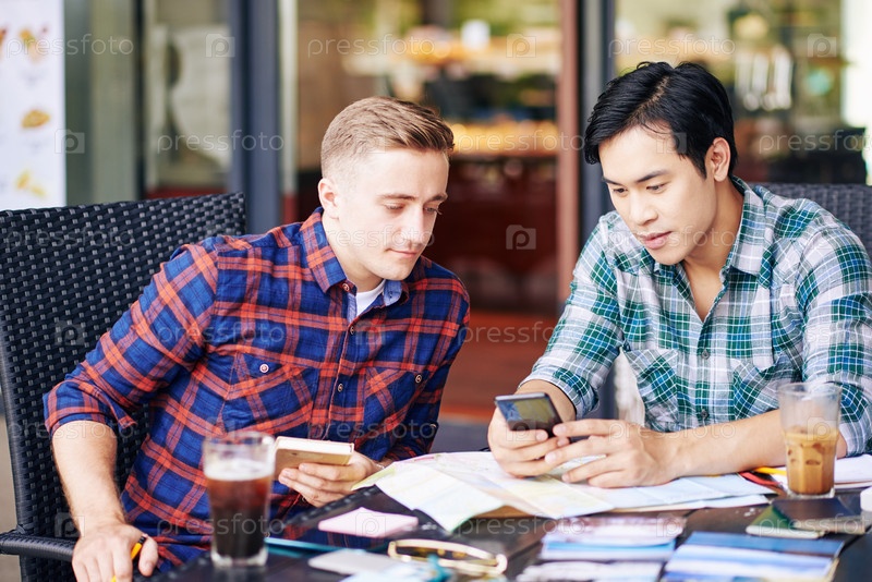 Друзья обсуждают путешественное приложение