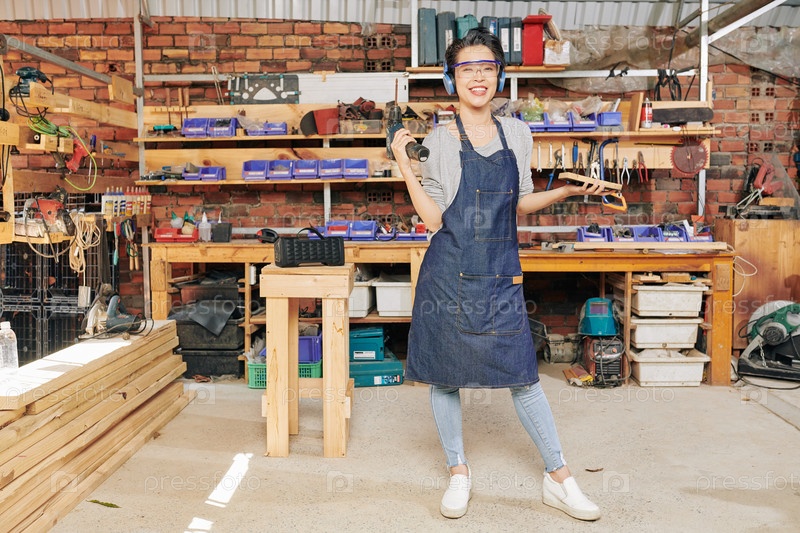 Счастливая юонг-женщина плотница