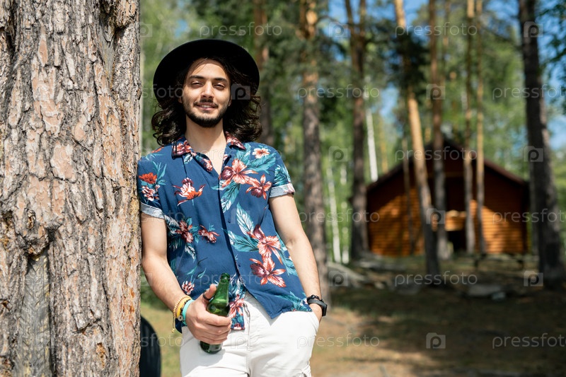 Хиппи парень с бутылкой пива