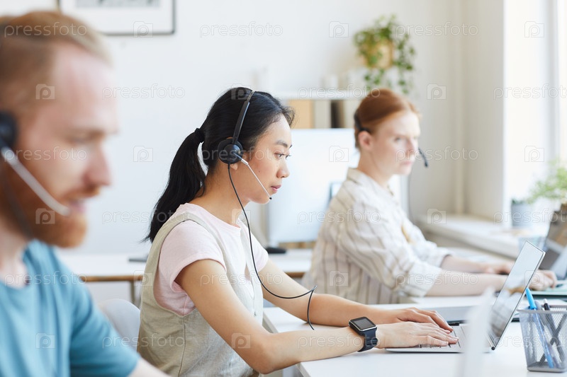 Деловая женщина, работающая в колл-центре
