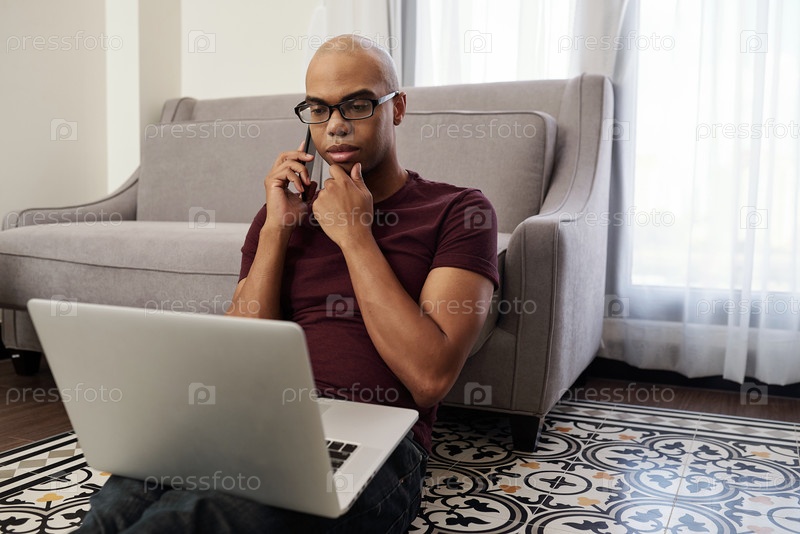 Фрилансер разговаривает по телефону с клиентом