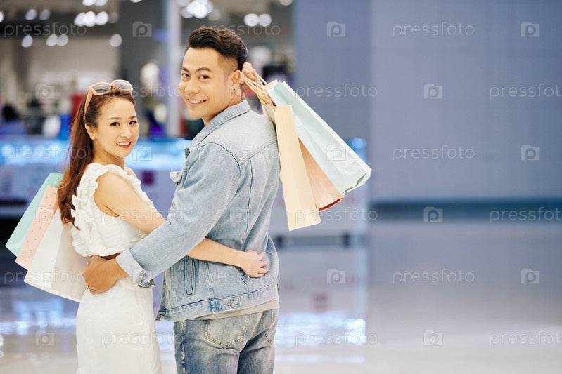 Веселая пара в торговом центре