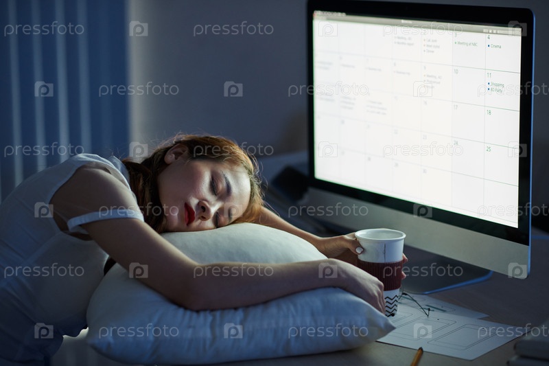 Деловая женщина уснула в офисе