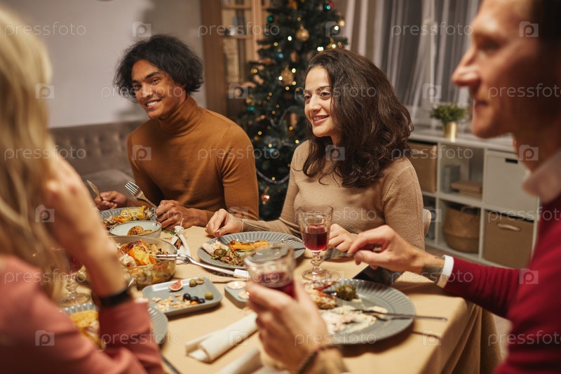 Друзья, наслаждающиеся ужином в помещении