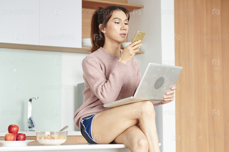 Ледибой проверяет телефон