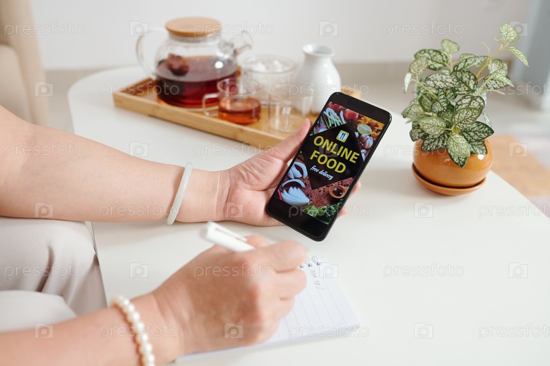 Женщина заказывает еду онлайн