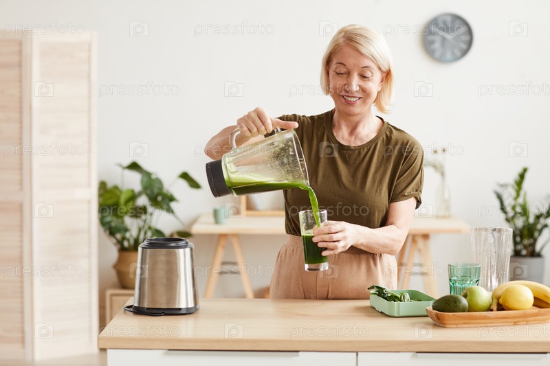 Женщина пьет овощный коктейль