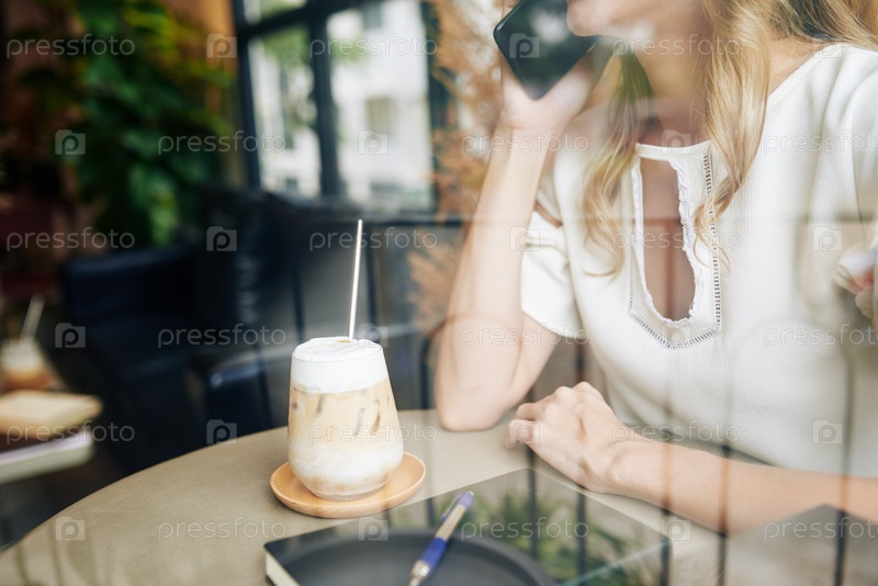Женщина пьет ледяной кофе