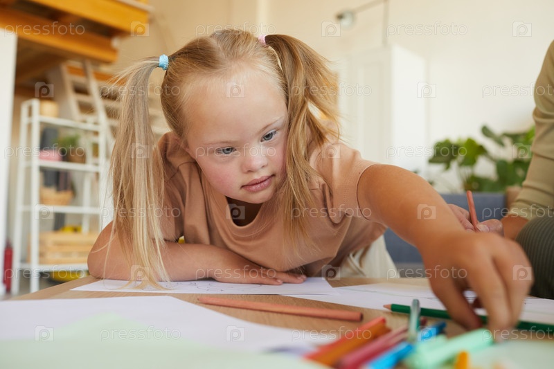 Девочка с синдромом Дауна на уроке искусства