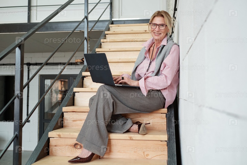 Успешная леди использует ноутбук