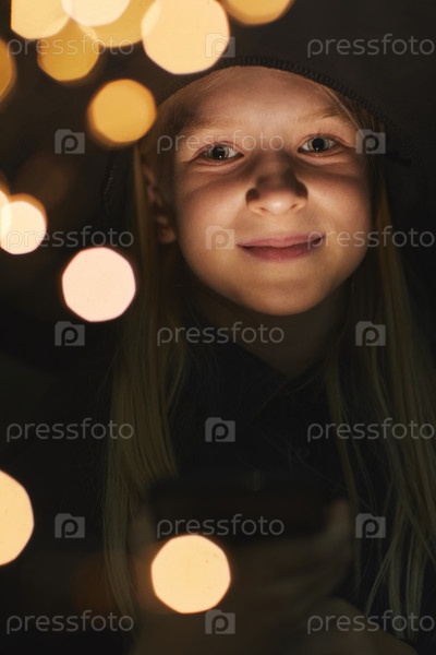 Девочка, освещенная огнём ночью