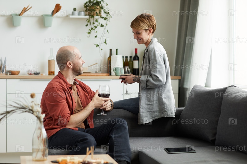 Пара пьет вино дома