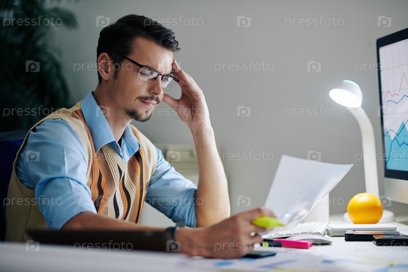 Бизнесмен читает отчет
