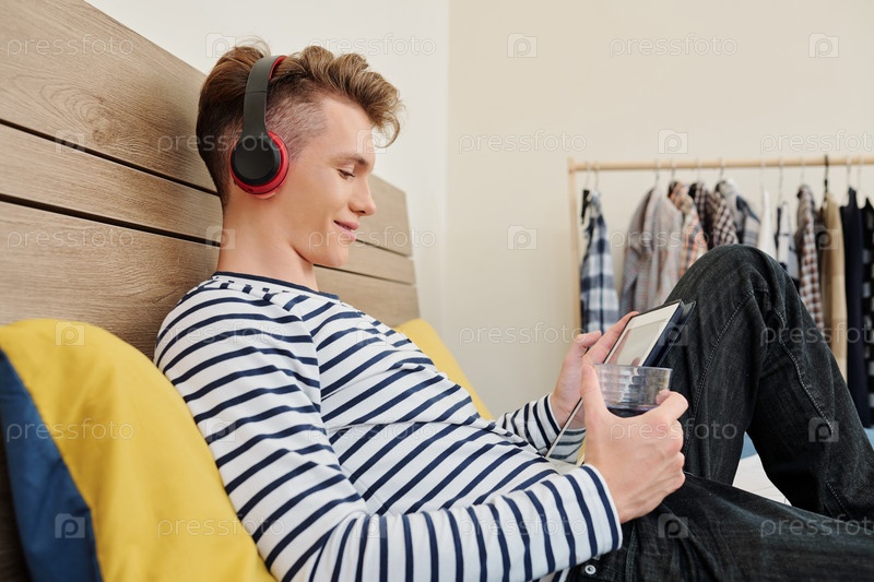 Подросток смотрит видео блогера
