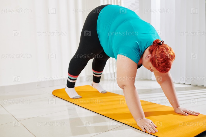Женщина практикует собаку, обращенную вниз