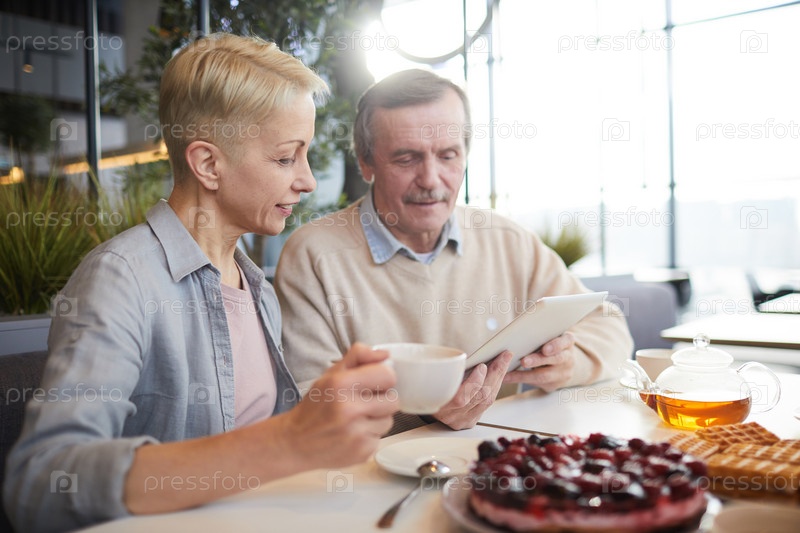 Зрелая пара сидит в кафе