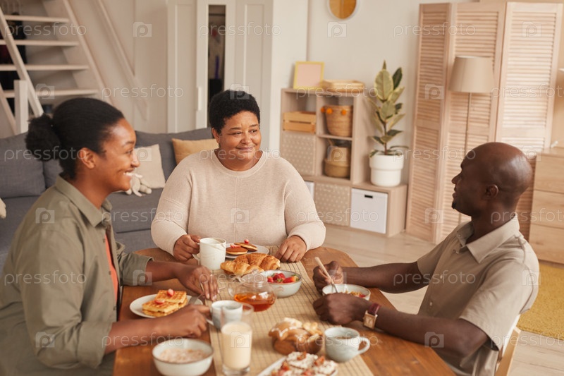 Афроамериканская семья наслаждается завтраком дома