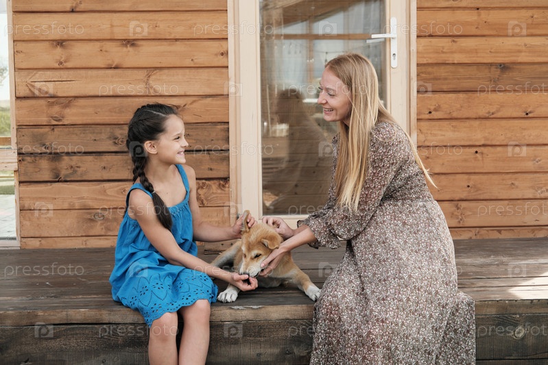 Семья играет с собакой