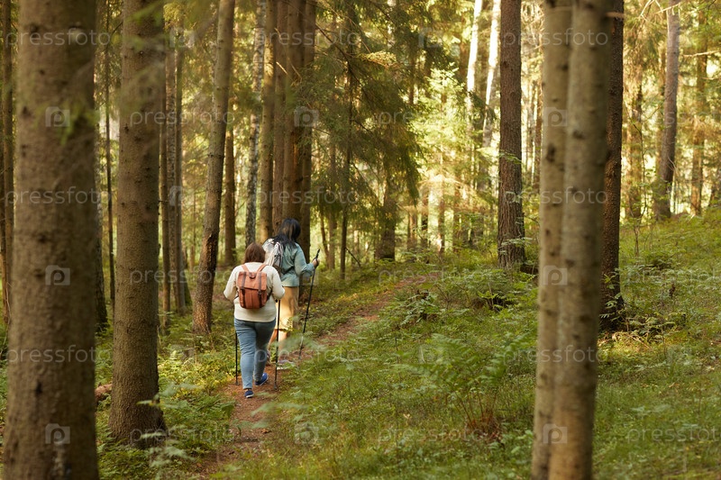 Женщины, гуляющие по лесу