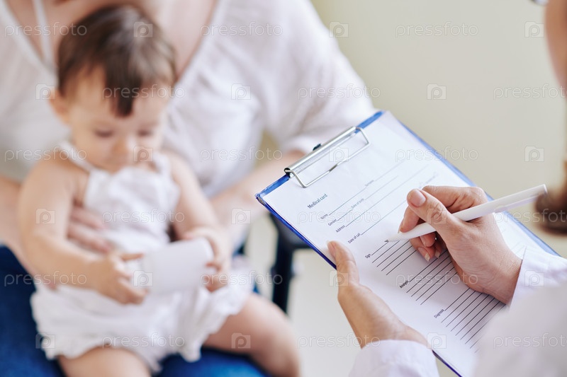 Педиатр заполняет медицинский документ