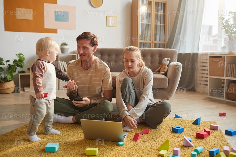 Семья, использующая ноутбук