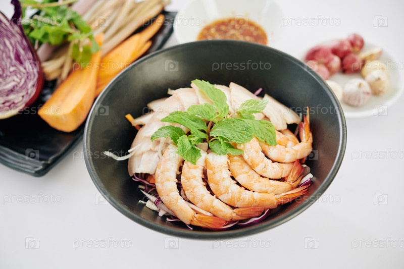 Чаша с вкусным азиатским блюдом