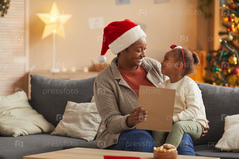 Счастливая мать и дочь читают письмо Санте