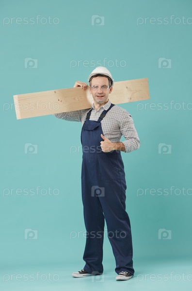 Портрет зрелого работника, показывающего большие пальцы вверх