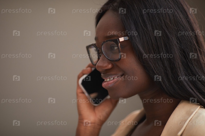 Молодая афроамериканская женщина, говорящая с помощью смартфона