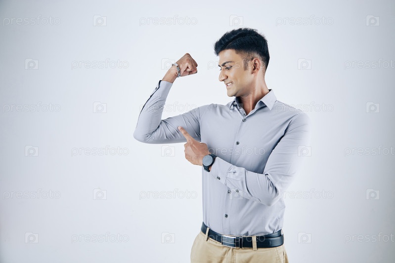 Бизнесмен показывает мышцы