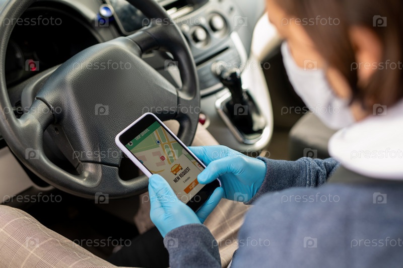 Водитель такси проверяет заказ на проезд
