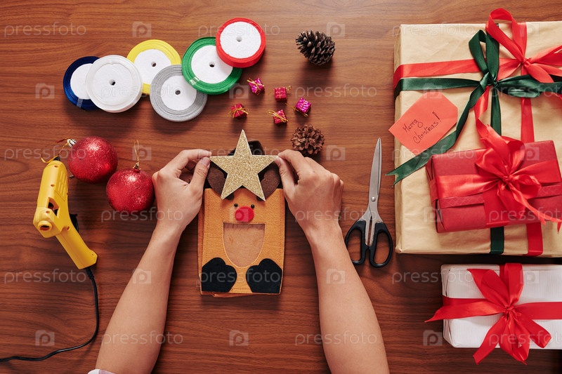 Человек, делающий оленей рождественскую сумку