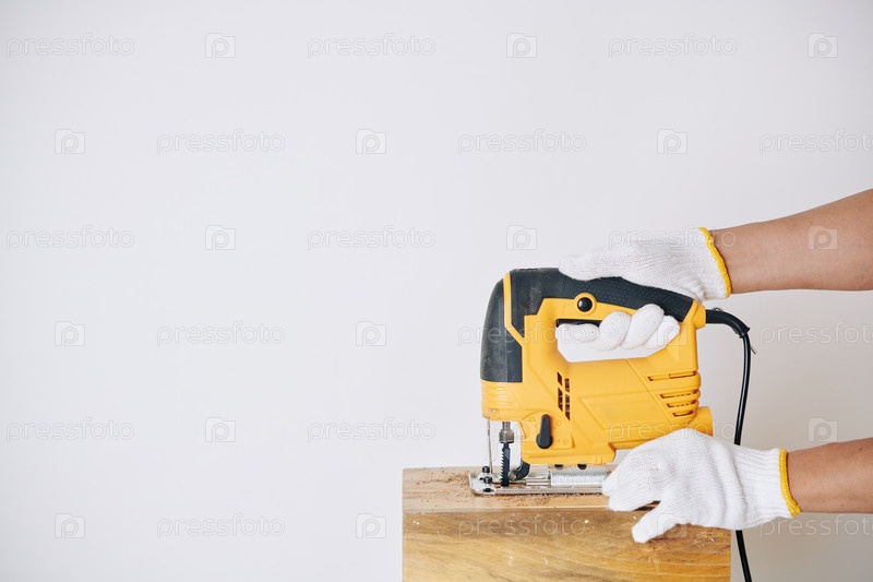 Плотник, режущий деревянную доску