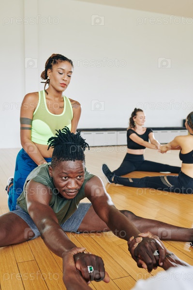 Тренер отталкивает спортсмена