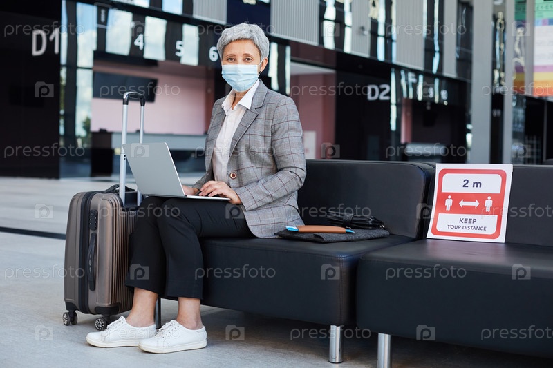 Женщина в аэропорту во время пандемии