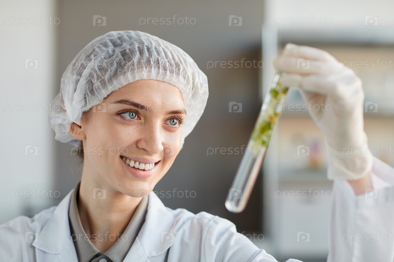 Улыбающаяся женщина-ученый проводит эксперименты в лаборатории
