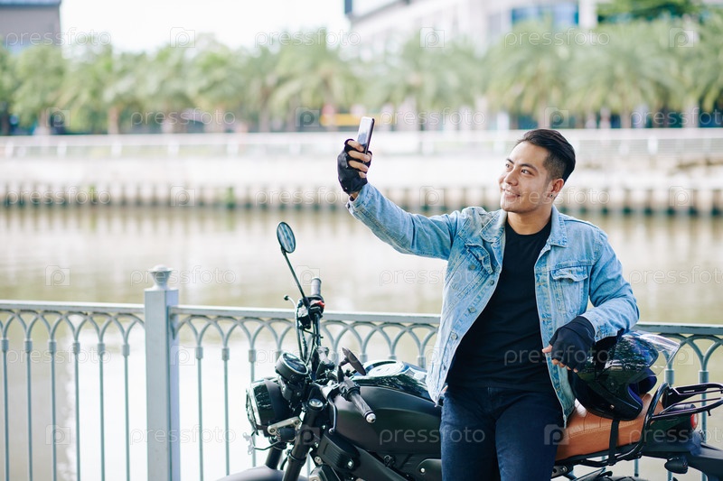 Мотоциклист делает селфи