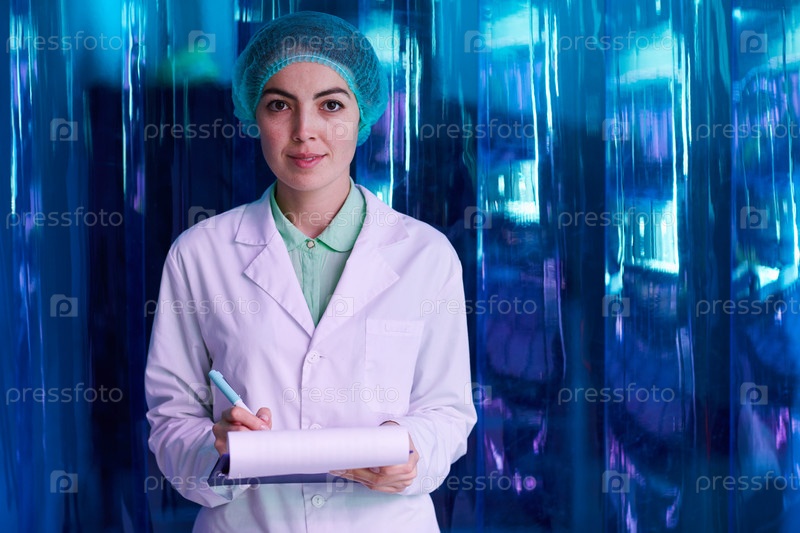 Учёная-женщина позирует в лаборатории