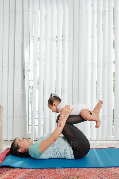 Мать тренируется с маленькой дочерью