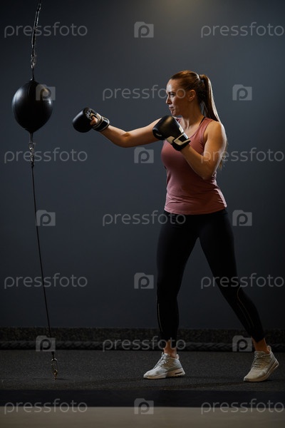 Молодая женщина, боксирующая на черном