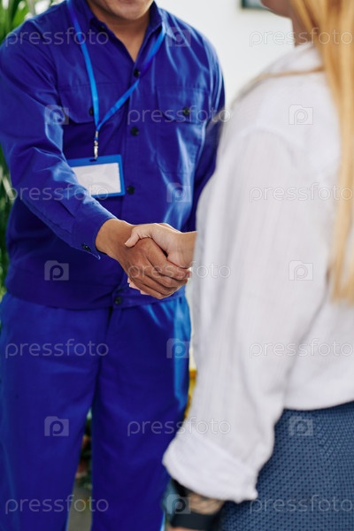 Женщина, пожавшая руку сантехнику
