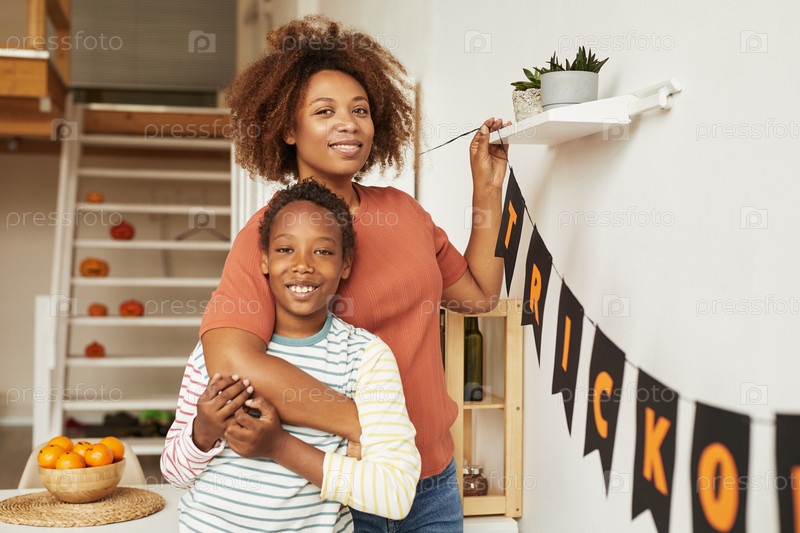 Мать и ребенок декорируют комнату