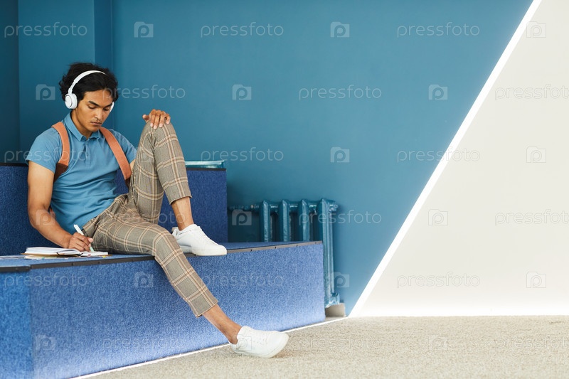 Темнокожий студент-мальчик пишет в блокноте
