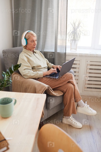 Женщина сидит дома с ноутбуком