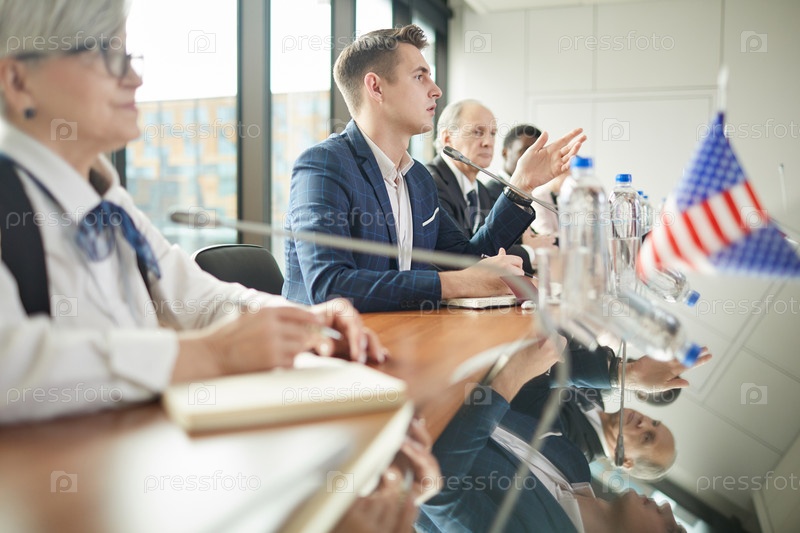 Бизнесмены обсуждают на конференции