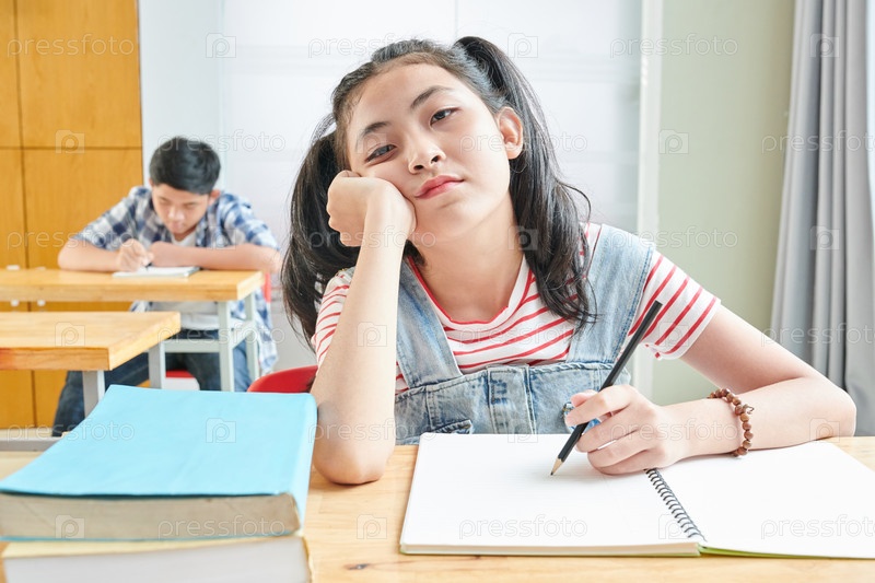Скучная вьетнамская школьница