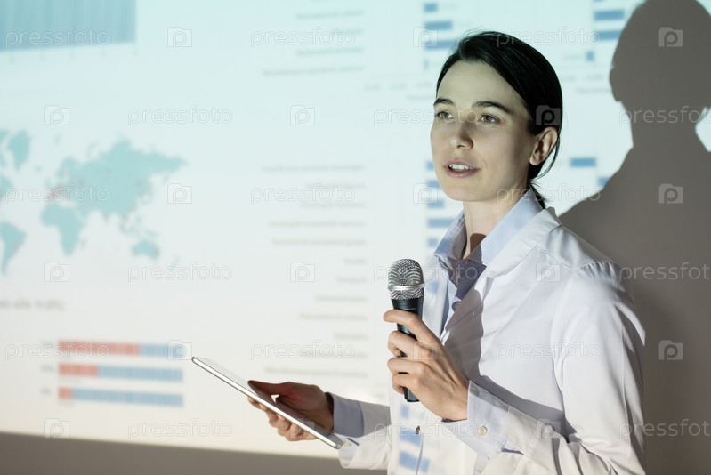 Молодая женщина на медицинской конвенции
