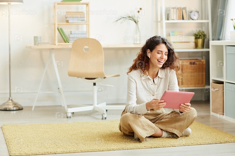 Женщина смотрит что-то смешное