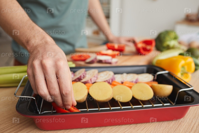 Мужчина готовит овощи на гриле
